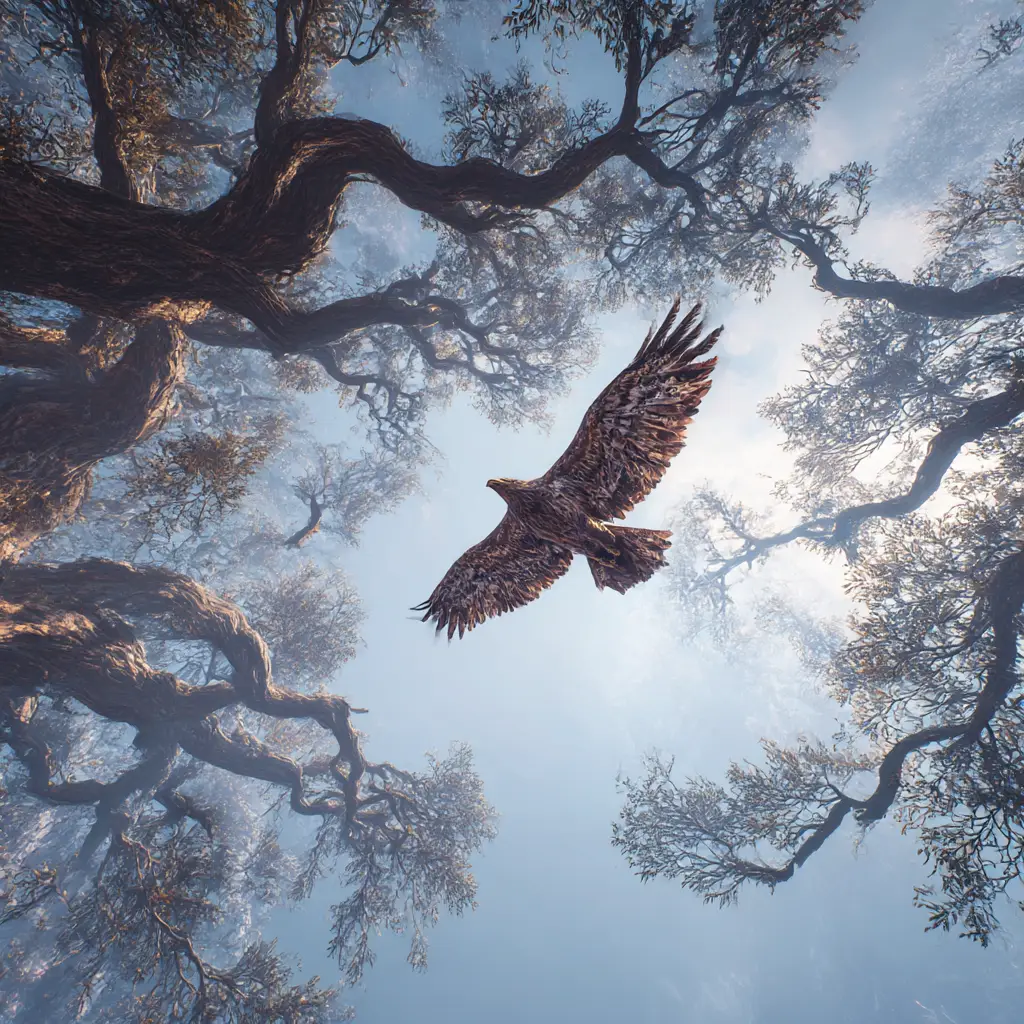 Eagles appear in several myths involving transformation. One striking example is the story of the giant Thiazi, who takes the form of an eagle to seize the goddess Idunn and her golden apples of youth. This tale shows the eagle as a symbol of both freedom and danger, representing immense strength and cunning that can serve good or ill.