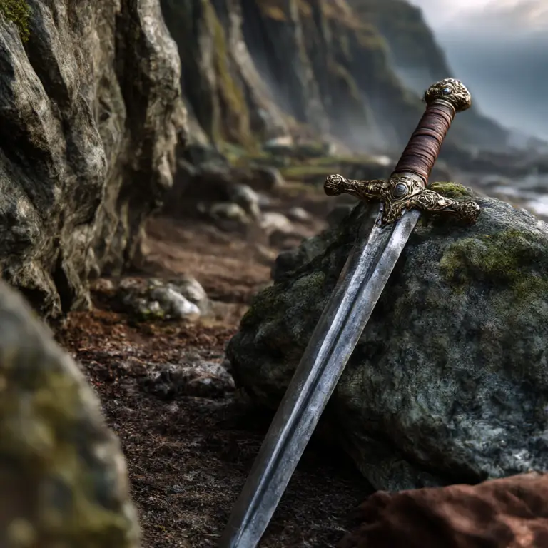 Gram’s most famous deed comes when Sigurd uses it to kill the dragon Fafnir. Acting on Regin’s advice, Sigurd digs a trench along the path where the dragon crawls to drink. As Fafnir passes overhead, Sigurd thrusts Gram upward into the creature’s underside, delivering a fatal blow.