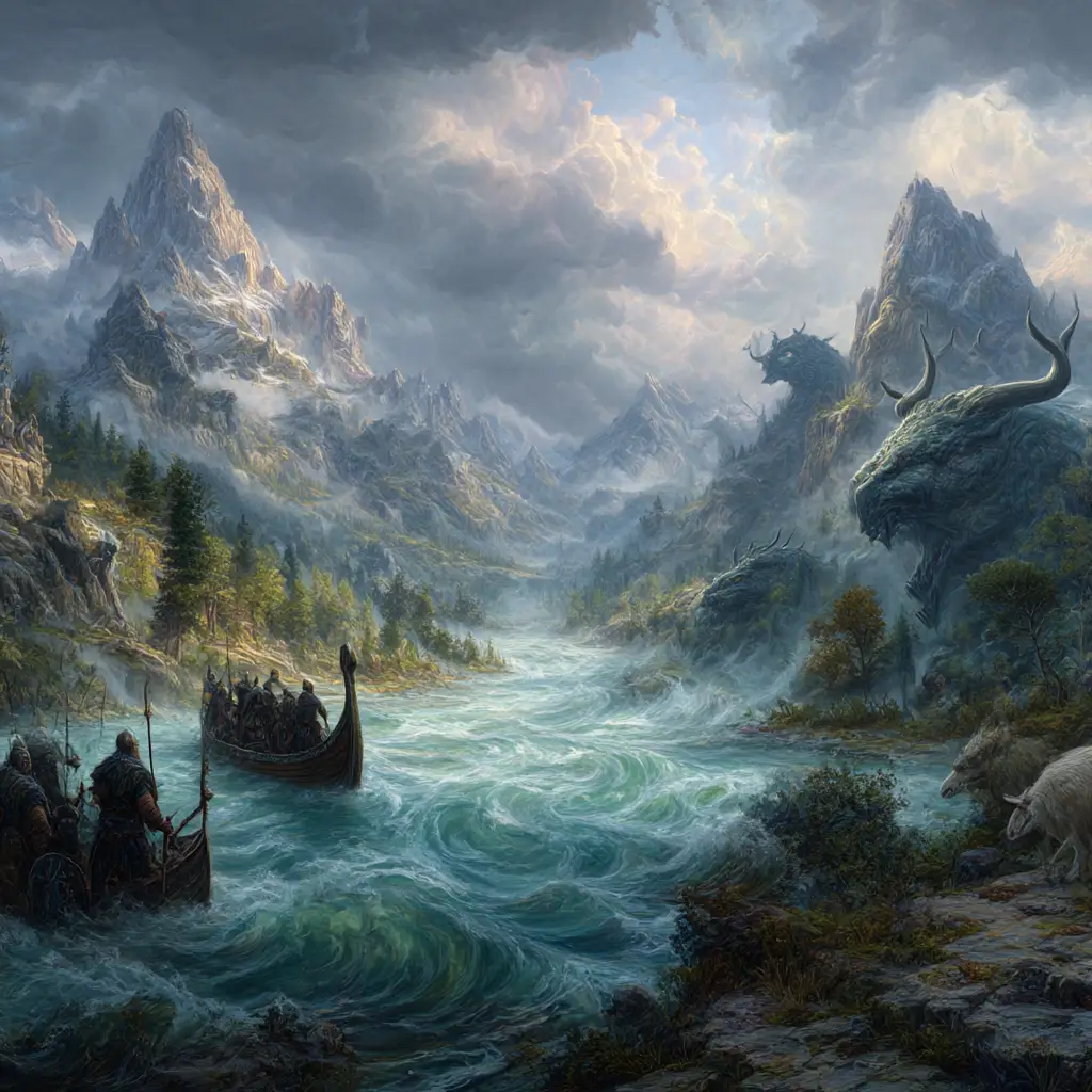 Rivers in Norse mythology are forces that connect worlds, create life, and guard the boundaries between order and chaos. From the freezing Élivágar that birthed the first giant to the echoing Gjöll that marks the way to the underworld, these mythic waters shape the stories of gods and men alike. They reveal a worldview where even the flow of water is part of the eternal balance of creation and destruction, echoing through time in the sagas of the North.